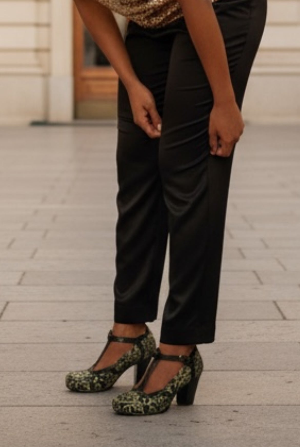 Cerise teal green is a cork footbed t-bar heel. The cushioned cork footbed makes the shoe comfortable and also acts as a platform reducing the heel height. Perfect choice for all occasions.
