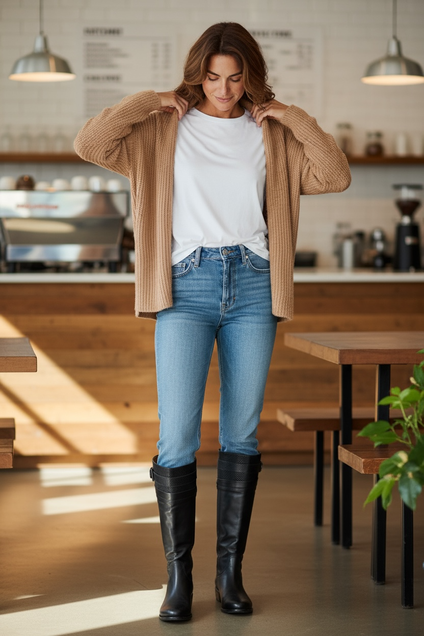 Beautiful soft black full grain leather riding style boot. Made on the same fit and last as the Bon Amie style. This long leg boot has a top cuff detail of embossed snake print suede leather for a sleek look to wear with tights. An adjustable back buckle strap helps tighten the leg fitting if you have narrower legs. A composite rubber sole wears strong and flexes easily. the inside has a 3/4 zipper to help enter the boot.