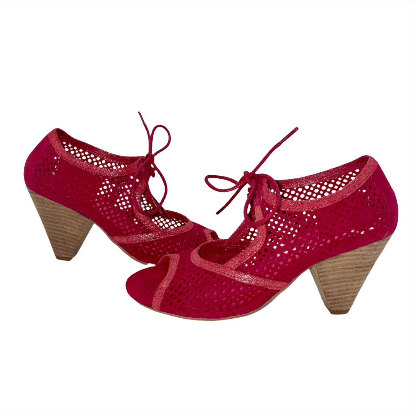 Pretty soft like butter! This new lovely red suede lace up dress shoe is so comfortable like you are wearing nothing on your feet. The flexible sole and 2 inch heel wrapped in leather is perfect for every day. Or dress up!