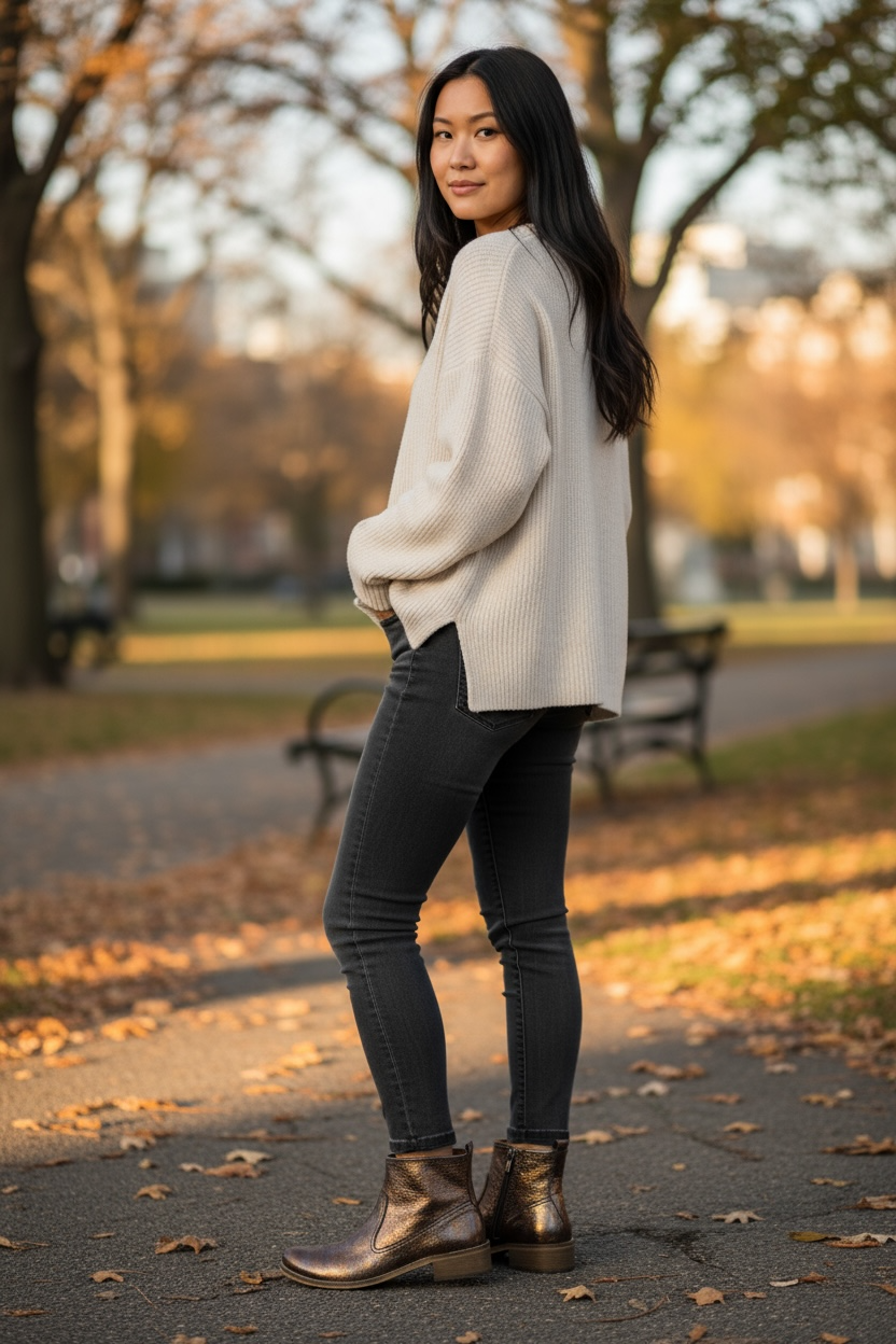 Ankle boot that says here I am! The favourite boot of the summer now comes in an iridescent print leather perfect for the winter season. This boot will compliment so many of your winter clothes as the colours shimmer between pink, green and golden as you walk.