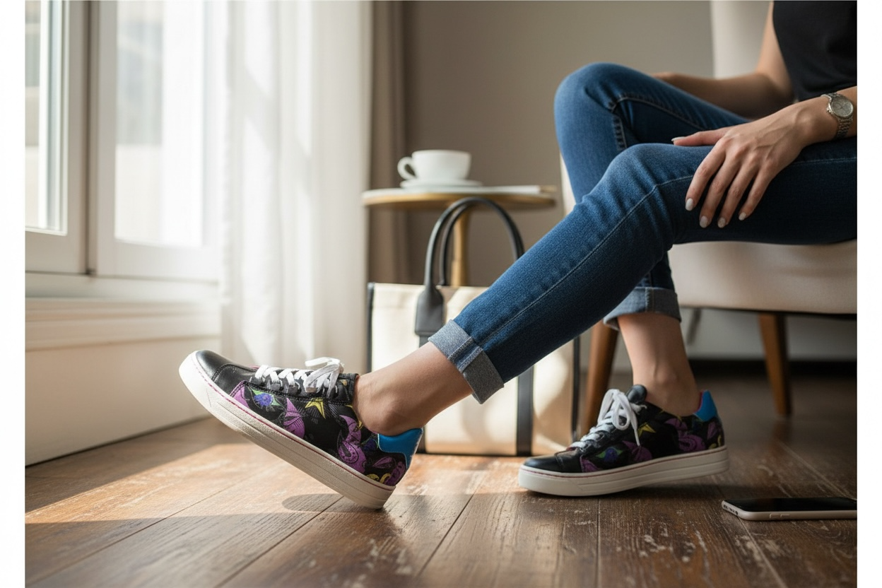 The lace opens fully for a fabulous fit for a wide foot. So unique with painted EYES and swirls. Cushioned ankle support and speed lacing.