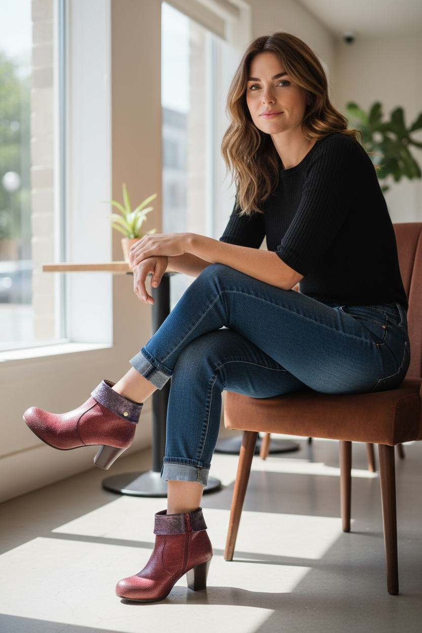 If you love shimmer this is a beautiful combination of rust- wine metallic with purple flower embossed cuff.