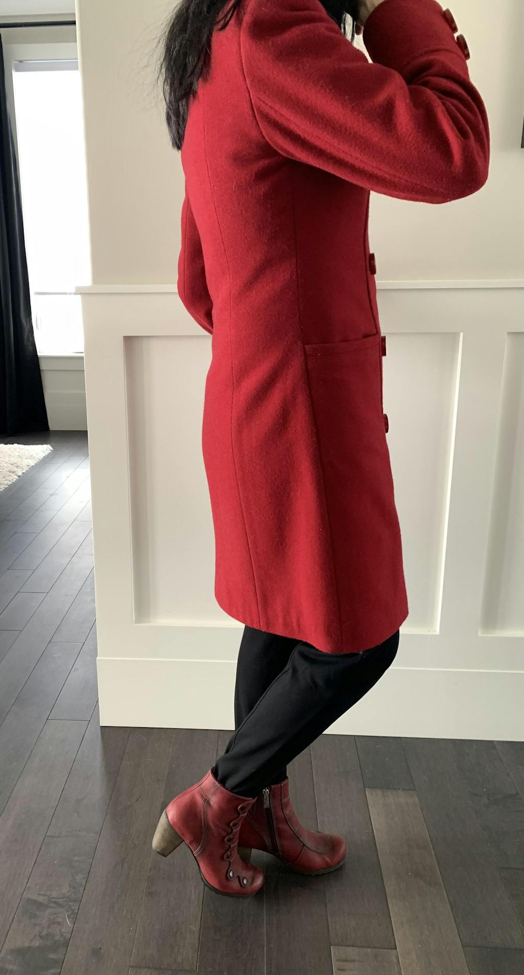 Gorgeous ankle boot in cranberry/wine. These are the shorter version of Semaine, a popular winter boot. This chic and cozy ankle boot has button accents, a low heel, and a rubber sole for effortless winter wear.