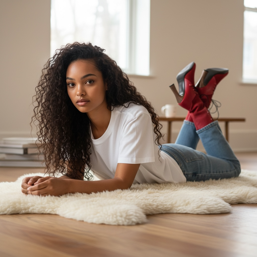 Stunning sexy and vivacious red mid leg boot. Black lacing up the front to adjust your foot and calf. Same last of Pointure and Paillette if you have a pair of them you know how comfortable they are... well these will be your favourite boots!